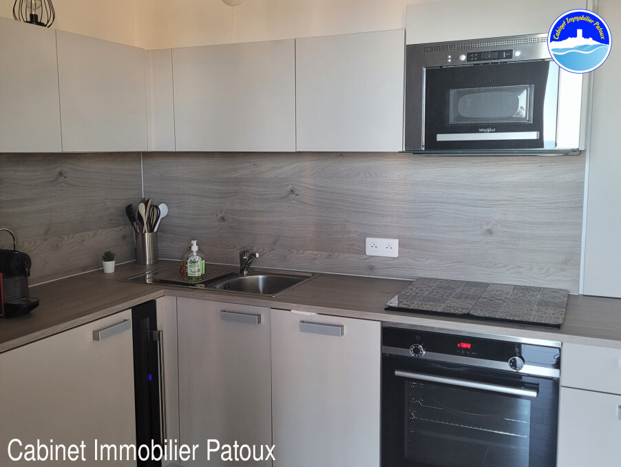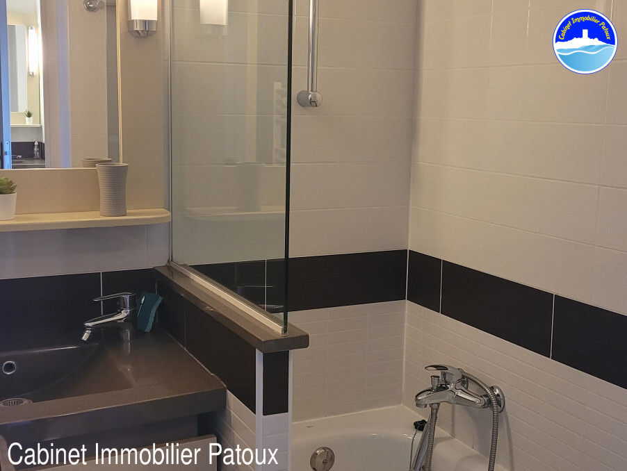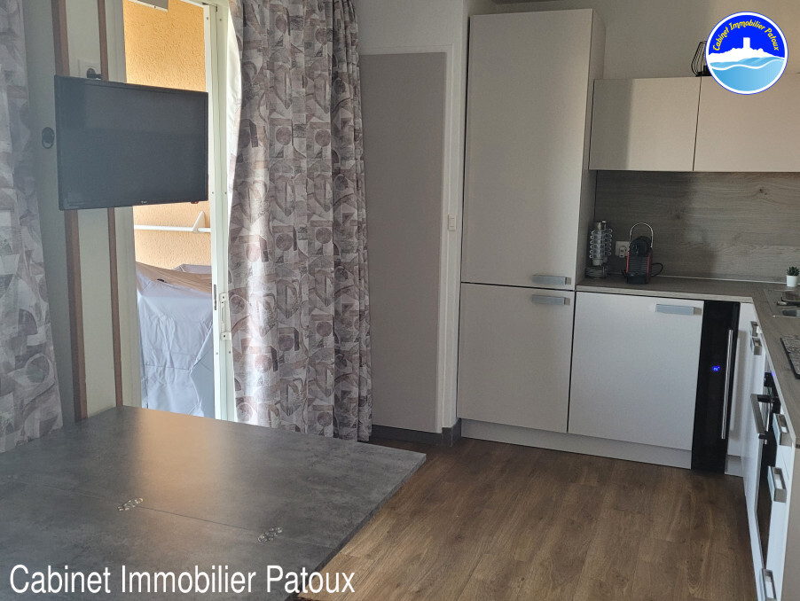 Ce 2/3 pièces climatisé de 37 m² donne sur une grande terrasse face à la mer et comprend un canapé- lit de 160 cm, une table jusqu'à 6 personnes, une télévision à écran plat et des rangements dans l'entrée. Wifi. Console de jeux pour enfants.