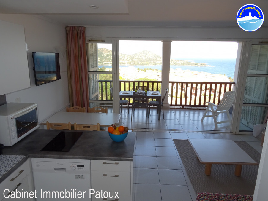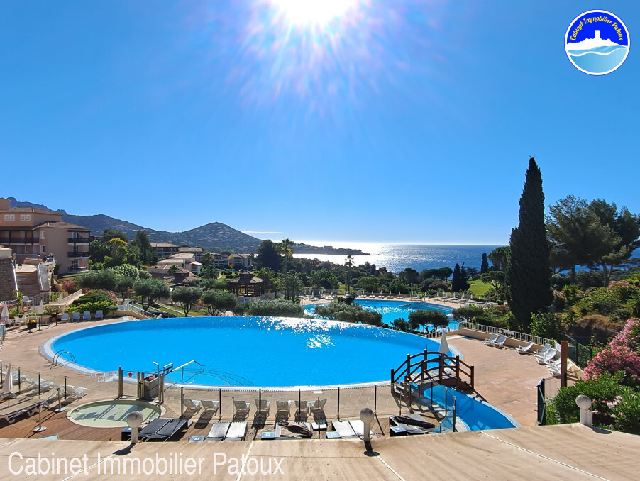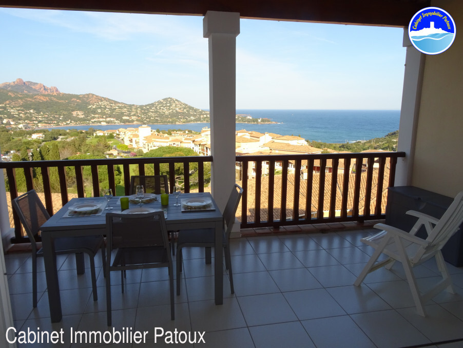 Belle pièce à vivre et une grande terrasse panoramique sur la mer et le massif de l'Estérel ;