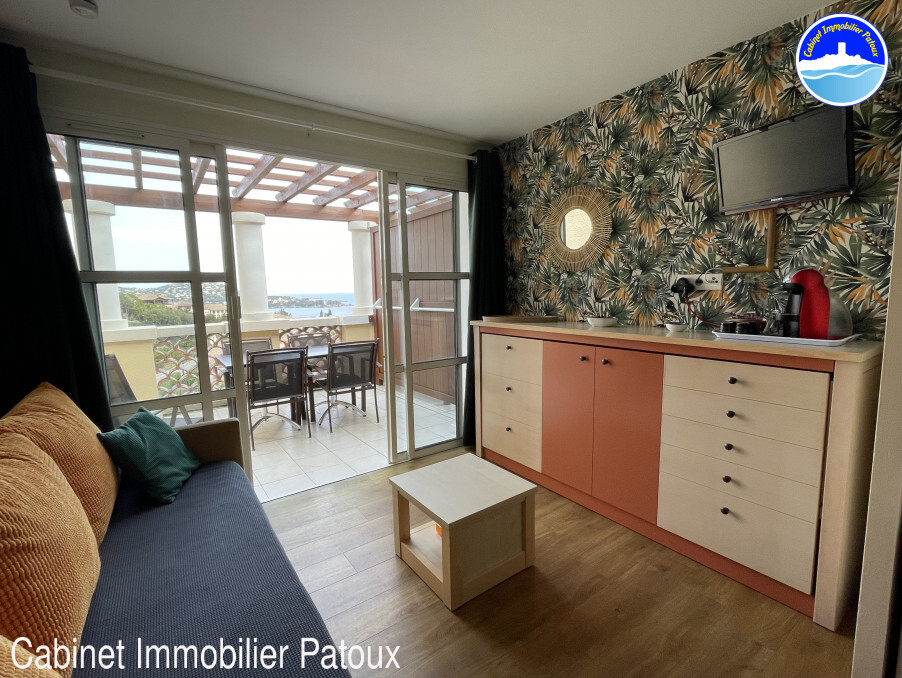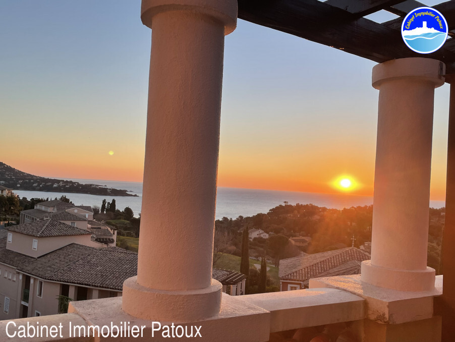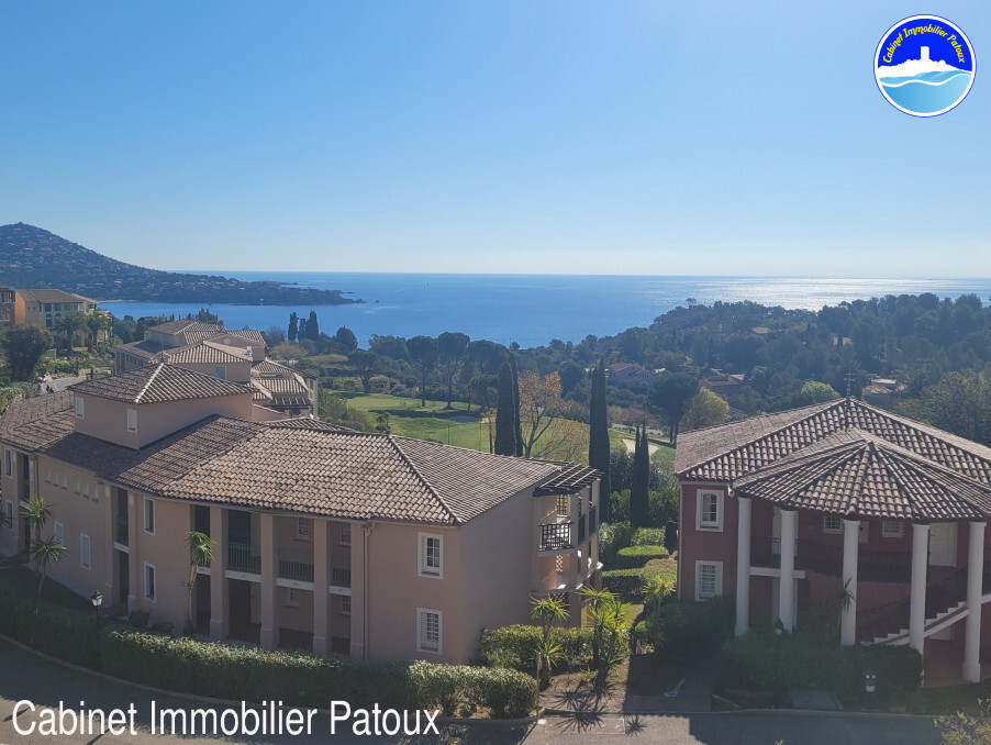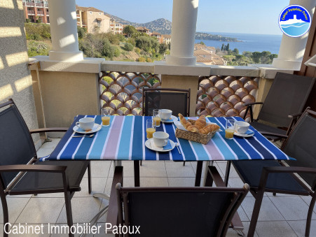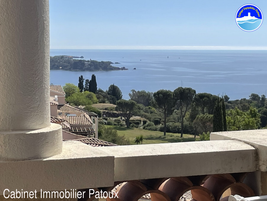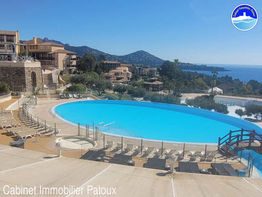 LOCATION A PARTIR DE 4 NUITS MINIMUM ET A LA SEMAINE EN JUILLET ET AOUTVue mer panoramique sur la baie d'Agay et sur le village avec sa végétation verdoyante