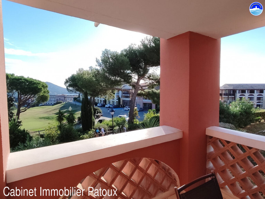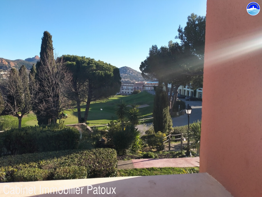 L'appartement de type Studio d'une superficie de 28 m² (surface d'un T2) est situé au 1er niveau d'un bâtiment de deux étages avec une superbe vue sur l'Esterel, le Golf et un aperçu mer. Il vient tout juste d'être rénové et est décoré avec goût. Il offre une belle terrasse couverte de 8 m² ensoleillée dès le matin et sans vis à vis.