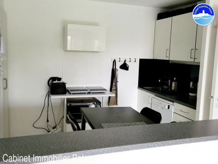 Cuisine ouverte sur le séjour avec table pour 4 personnes, nombreux rangements, un frigo congélateur, un four, des plaques de cuisson induction, un lave-vaisselle, une machine à café, une bouilloire, un grill pain, un micro-ondes.