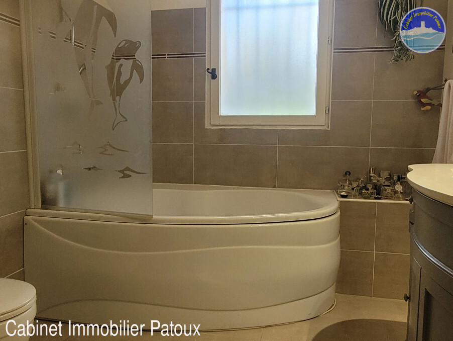 Salle de bains entre les 2 chambres avec grande baignoire, grande vasque et WC